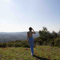 הצילום הזה היה סוג של מסע קטן – גם כי נסענו רחוק וגם כי חיפשתי הרבה זמן את הלוקיישן המדויק. המסלול ביערות הכרמל היה שקט, ירוק ומלא אווירה. הלבוש הכחול יצר ניגוד יפה לרקע. הרגשתי שיש בצילום הזה אמירה שקטה אבל חזקה. הוא גם היה הראשון שבו עבדתי ממש לפי תכנון מדויק שכתבתי מראש, וזה חיזק לי את הביטחון.